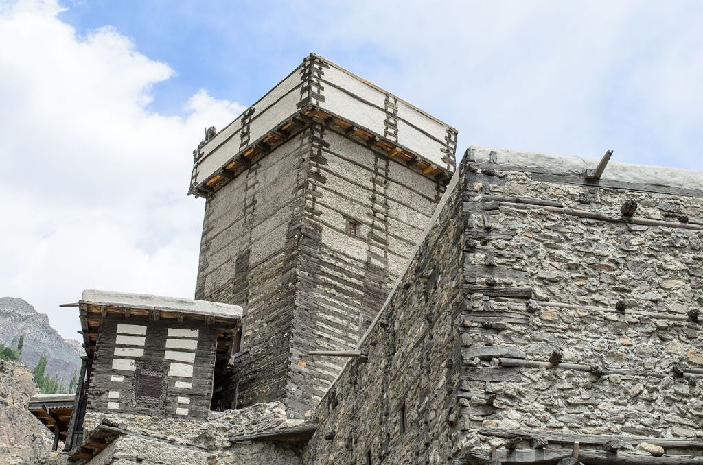 On the rooftop of the fort, along with the shikari tower, an ancient mosque (place of worship) can be seen, which was built almost 400 years ago, after the emergence of Islam in Gilgit Baltistan. The terrace area has a boundary made from wood and view from the terrace shows the river and the village Nagar right next to Hunza. Along with that is the oldest part of the fort, the tower. The tower is well decorated with cribbage construction. The fort was built in stages. In the walls holes were kept in the walls for defense purpose in case of war.