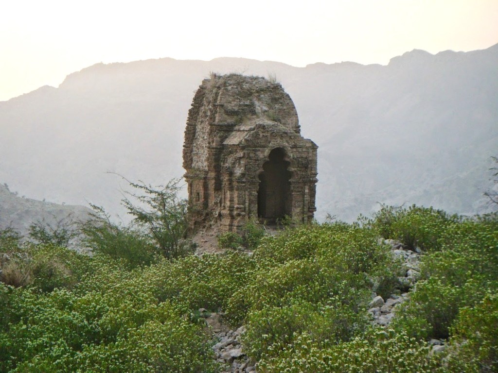 The main temple is roughly 65 feet tall and built out of brick and gypsum mortar on a square plinth. It is regarded as the “loftiest” of temples built by the Hindu Shahi’s in the Salt Range. The temple is three storied high, with stairwells leading to inner ambulatories. The western part has fallen down and the rests on brick piers. The temple is decorated with Kashmiri style motifs on its exterior, including arched niches niche. The structure of the main temple differs from Kashmiri temples which typically have pointed shikaras. The main temple is instead similar in style to the nearby Kalar and Kafir Kot temples.