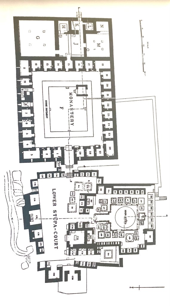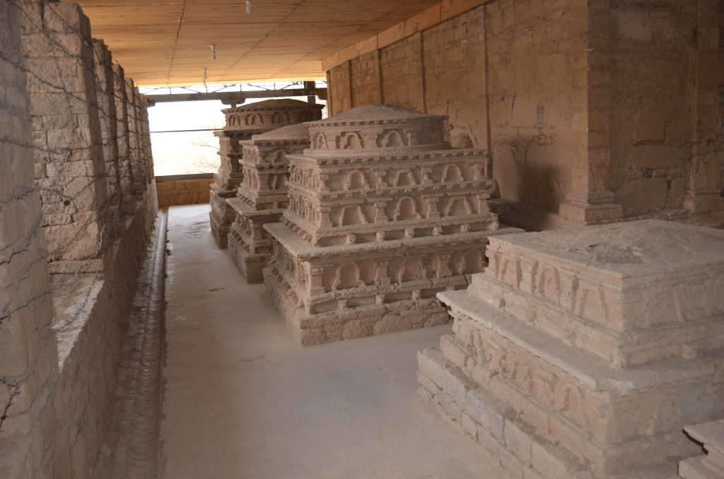 Jaulian, one of the most important stupas and monastery site of Taxila. It was built in the 2nd century AD. The site devastated in the 450s AD during the invasion of White Huns and later abandoned. subsequent rulers such as the Hun King Mihirakula persecuted Buddhist living in the region, as a result the site never recovered. The site is situated on a hilltop. The important feature of the site is central stupa, 27 peripheral stupas congaing 59 small chapels depicting scenes from life of Buddha. The monastery comprised of two quadrangles around which monastic living quarters were arranged. The architectural form of monastery is similar to that of nearby Mohra Moradu.