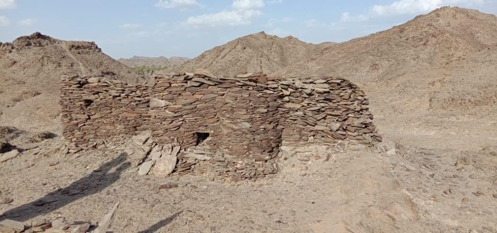 During the early Arab period the Muslim missionaries and traders used to enter into Makran and disperse to different areas of Sindh and Balochistan for the purpose of trade and spread the message of Islam. They left their mark on their way in the form of architectural contribution. One of the mosques said to have been built by the Arab in the wilderness outside the town of Washuk in Balochistan. This roofless mosque is situated in the mountains and comprised of main prayer space roughly 12 feet by 12 feet enclosed by a six feet high wall and a court marked with stone masonry. The mosque was built with rough rubble masonry carefully laid one over the other without mortar. There is also a small opening for ventilation on the right side of the mihrab. There is also mihrab in the western wall having a pointed arch. A small room adjacent to the mosque also has a mihrab. The mihrab niche is spanned with stone slab lintel.