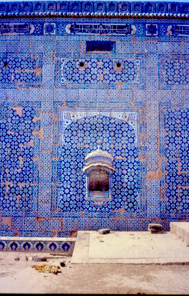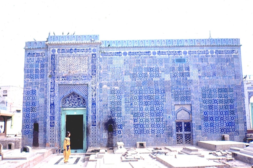 The earliest extensive use of glazed bricks and tile work in Multanis found to the tomb of Shah Yousuf Gardez. He was born in Gardez, Iran (1088 AD) and came to Multan at the age of 33. He died in 1136 AD. His mausoleum is rectangular in Plan and has flat roof. The mausoleum id decorated with square or rectangular tiles in white and in shade of blue color some are plain while others have geometric or floral motifs. The tomb was designed on module and glazed tiles follows the same dimension as all lines concord with each other.