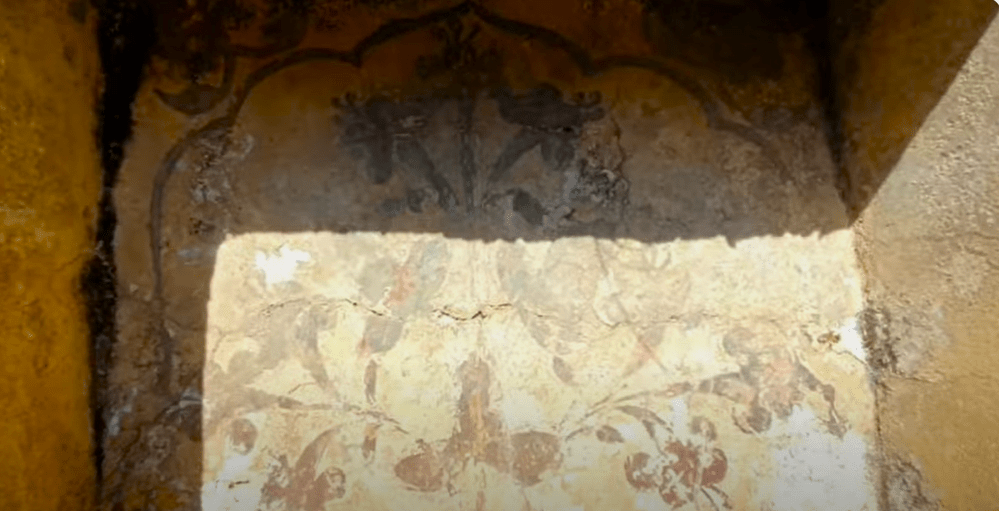 At Samahni besides the Baghsar fort, there are remains of Mughal period mosque which remained in use before partition of subcontinent. Being located on the international border, people left the area and abandoned this mosque. This Mughal period mosque was built sometimes in the 17th century. The mosque prayer hall is rectangular in plan. On the Qibla wall there is a deep mihrab flanked by two niches on its either side. On the north and south wall, there are square and rectangular niches. These niches as well as mihrab were decorated with fresco painting using red ochre. The soffit of the mihrab is finished with Kalib kari. The floral paintings are inspired from Lahore School.