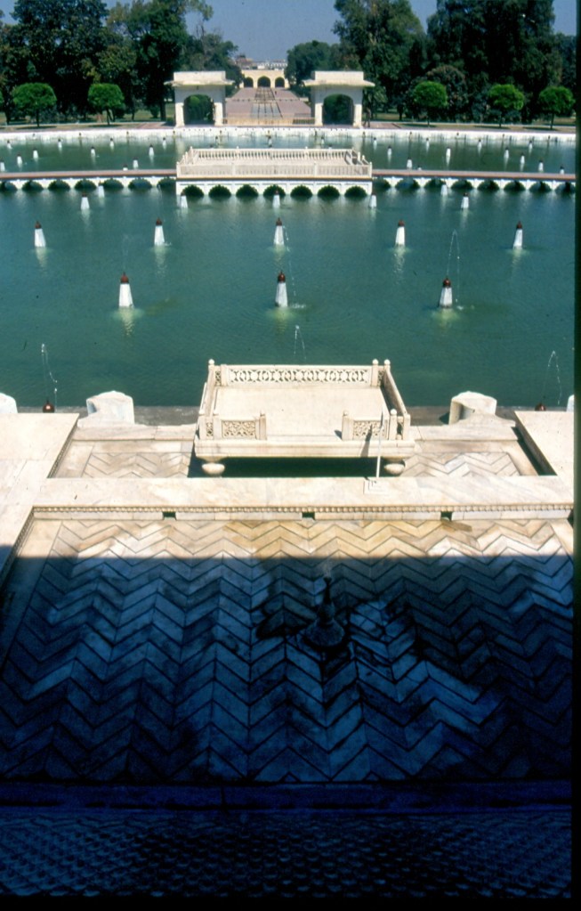 The garden has three broad terraces stepped majestically down to the floodplain. A broad canal feeds hundreds of fountains, pools, and lushly irrigated plantings. It is well known that contemporary Mughal sources refer to Shalamar garden, Lahore as Farah Bakhsh and Faiz Bakhsh. The lowest terrace (Faiz Basksh) was meant for public use, the middle was the emperor’s garden, and contains the most elaborate water system among all Mughal gardens, and the highest (Farah Bakhsh) was reserved for the harem. The design elements are played in an innovative manner creating view and vistas which has never been achieved in any other garden. Shalamar garden is a dynamic realm of visual, acoustic and aromatic effects produced by diurnal and seasonal changes. All its features—flowers, trees, birds, breezes, animals, built structures, water, and light—enhance the experience. In Shalimar Garden, the combination of aesthetic and technical ingenuity produced a garden that must have stunned early visitors.