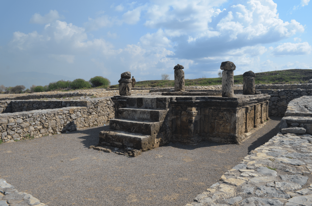 The most impressive of the three cities of ancient Taxila is Sirkup. The city of Sirkap was built by the Greco- Bactrian king Demetrius around 180 BC. Demetrius founded an Indo-Greek kingdom that was to last until around 10 BC. Sirkap is also said to have been rebuilt by king Menander. The excavation of the old city was carried out under the supervision of British archaeologist Sir John Marshall by Hergrew from 1912–1930. In 1944 and 1945 and later in some parts by Sir Mortimer Wheeler and his colleagues. The excavation carried out at Sirkap taken back to the Indo Scythian and Indo Parthian periods (1st-2nd century AD). The site contains several temples, shrines and a possible university where students used to come from different parts of the world.