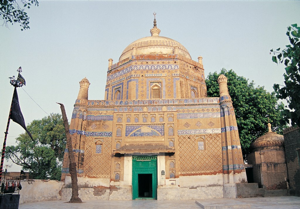 This tomb is a beautiful example of Turko-Iranian architecture from the Sultanate period in South Punjab. The combination of flutes and flanges in the corner towers was inspired by the tomb of Qutub Minar.