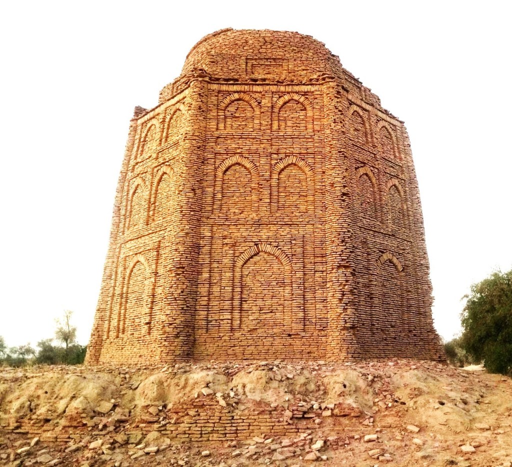 Mithri is the headquarter of Raisani tribe. The tomb of an unknown person was located on a raised platform and its design was based on a similar concept applied in the tomb of Shahinshah at Bhag. The tomb is octagonal in plan and raises in three tiers. Each tier is separated from the other by rectangular frames. It is slightly sloping upward. There are circular upward-sloping corner towers at each corner of the octagon. Horizontally the lower tier is higher than the upper two and divided into two parts having blind arches. The lowermost arch is higher and wider and framed on three sides. The brick masonry was finely executed showing voussoirs of arches and fine brickwork of the frames. The octagonal drum finally supports the hemispherical dome. The drum is sixteen-sided in the interior and octagonal in the exterior. Each side of the octagon has an opening for light and ventilation.